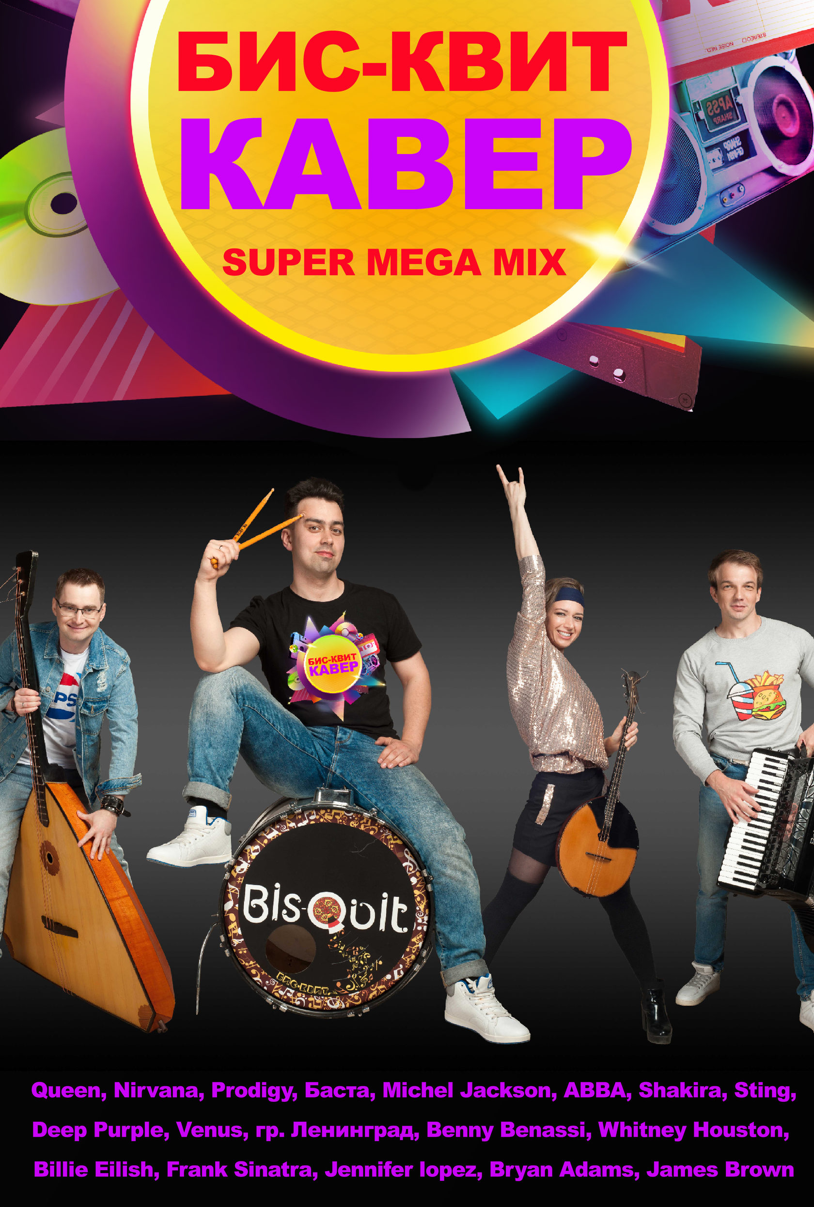 Это подборка знаменитых зарубежных и отечественных хитов в эксклюзивных кавер версиях группы BIS-QUIT BAND.